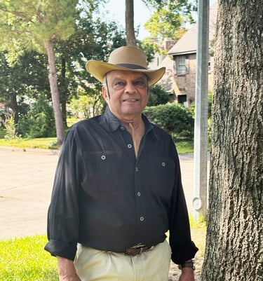 Thus equipped, I began my second stage of life that the ancient Hindu texts describe as Grihastha, and which is loosely translated into English as the boring term of householder. Writing was not even a remote possibility in my chosen path in this stage, but I did sustain my interest in books and even managed to read a good number. This was also a time of personal growth and fulfillment, enriched by two wives (one at a time), two daughters, three stepdaughters, and a career of 33 years at Exxon Corp. Retirement came in 2001 and with it came new interests, and grandchildren. In this new life, I took up horseback riding and skiing, taught myself carpentry, applied myself to drawing and painting, and decided to write a novel. The old embers were stirred, and an orange glow reappeared from the mists of time. And to my surprise and joy, I find that writing is inspirational and fulfilling.